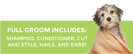 Our guests will be able to play at our day care until their appointment time and then our pros will work their magic to get Buster in and out as soon as canine-ly possible. Day care charges applicable. Day care guests must pass temperament test, be current within 6 months for bordatella vaccines and they must be spayed/neutured.