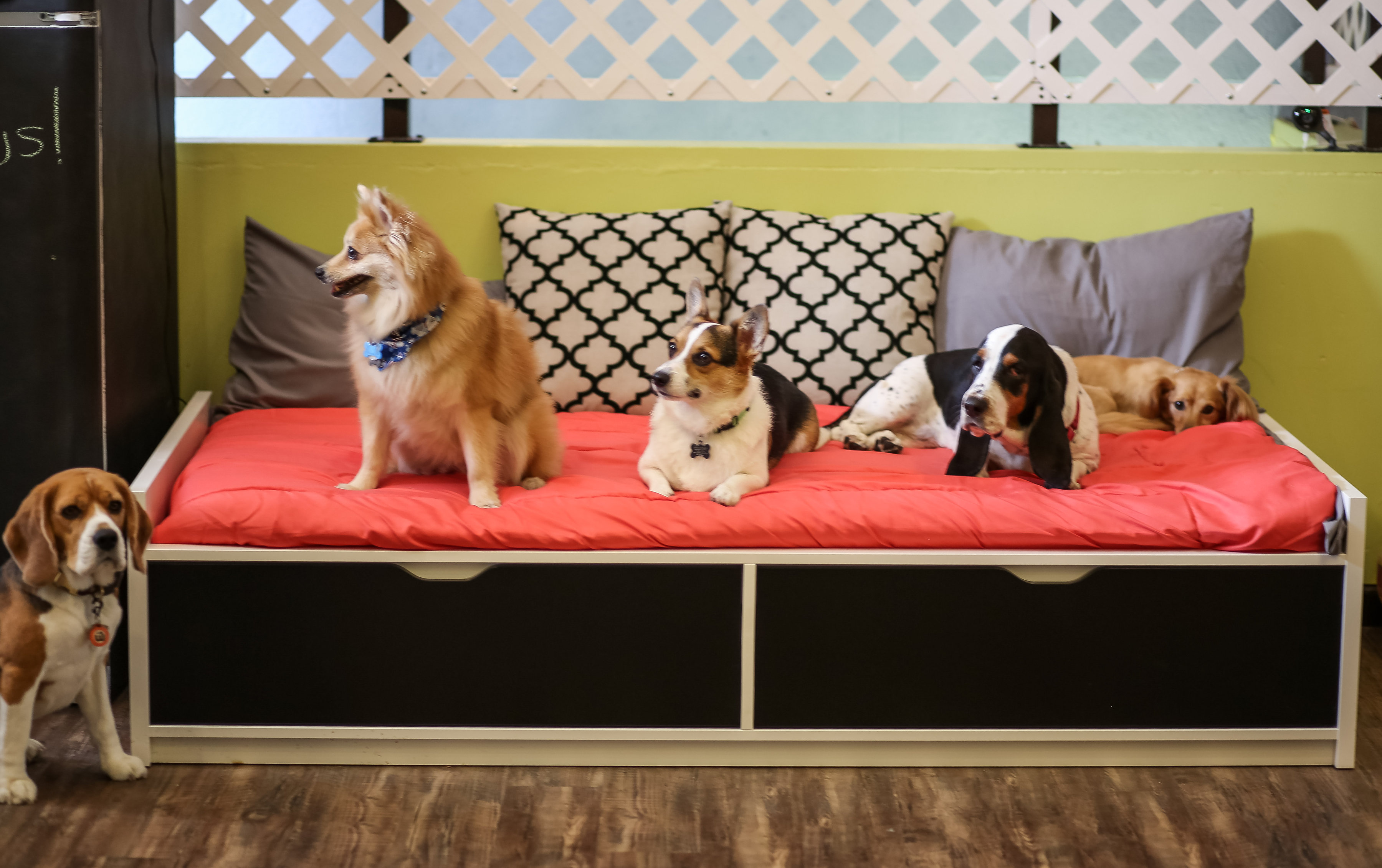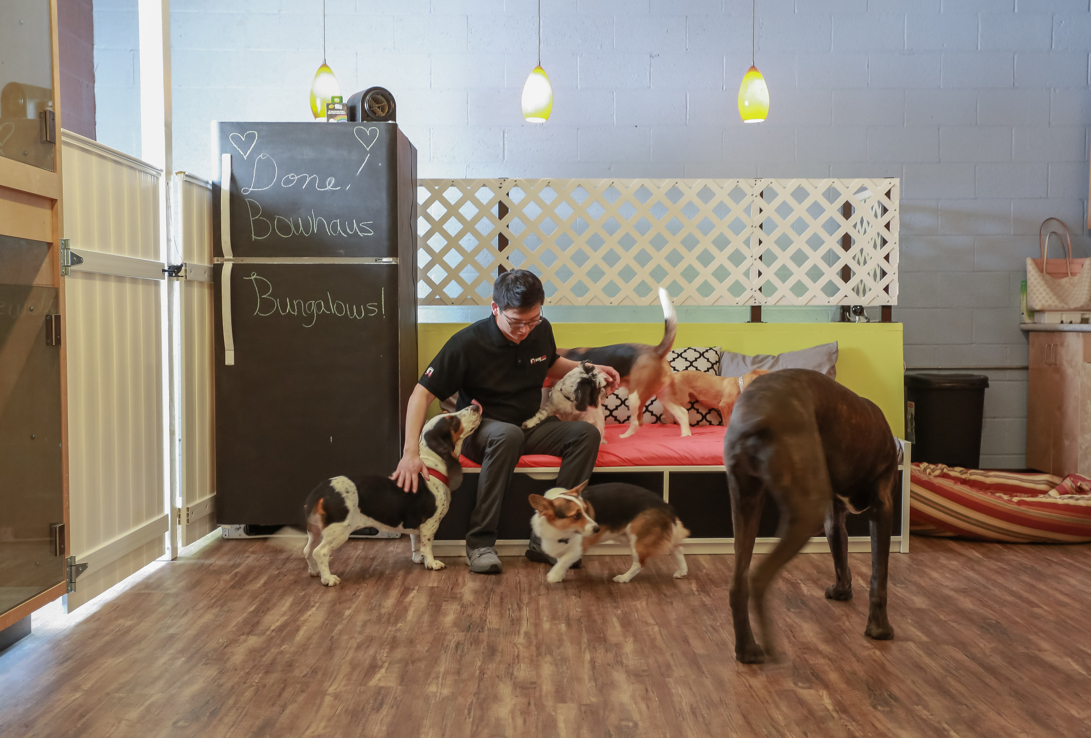 Every pet parent can be rest assured that their pup will have the plays, the eats, and the rests he/she needs. While all of our guests will get the best care, our Bungalows provide just a little extra for those needing an overnight stay. Come on in and make yourself at home at the Bungalows by the Bowhaus Pet Company.